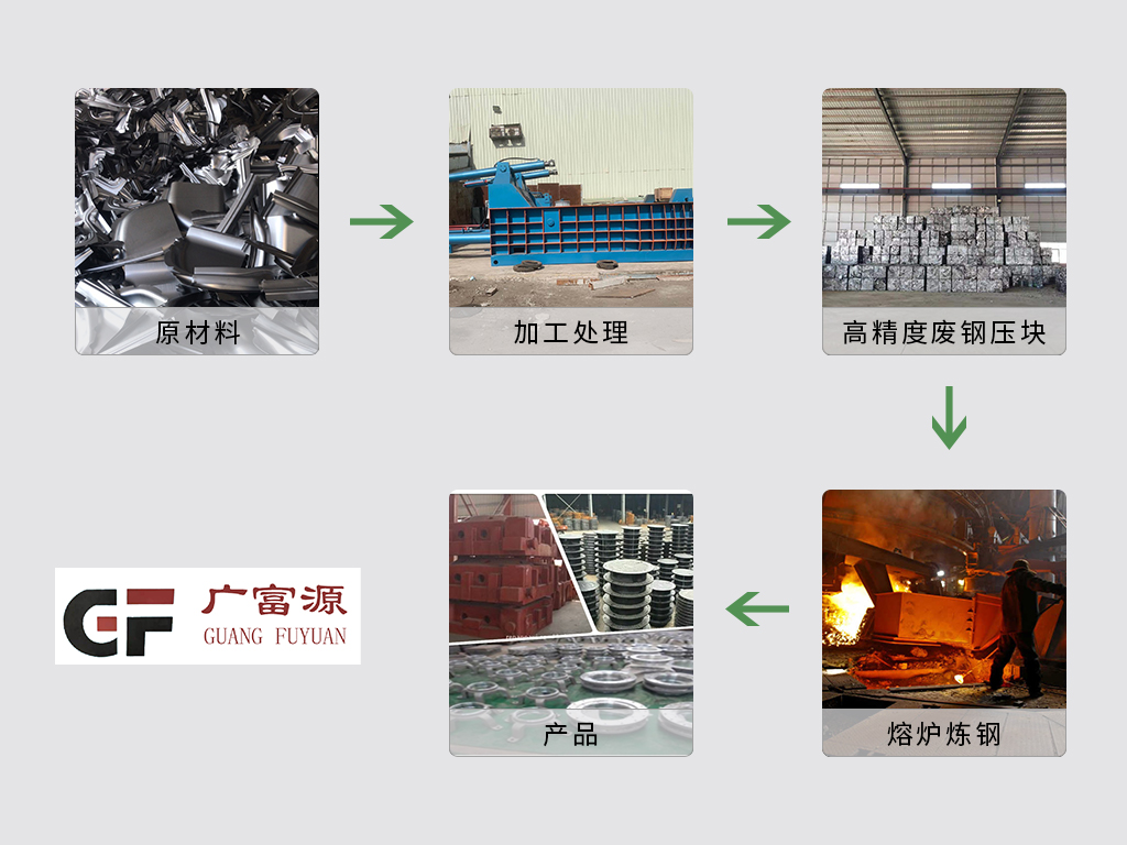 在原材料上,广富源引用国内先进的分选设备和液压加工设备,来处理未分类的零散废钢;同时车间加工作业采用全机械化安全工作,车间具备中央除尘系统和降噪系统。